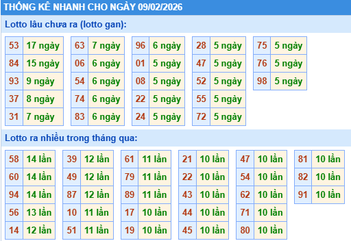 Bảng tần suất lô tô miền bắc ngày 09/02/2026