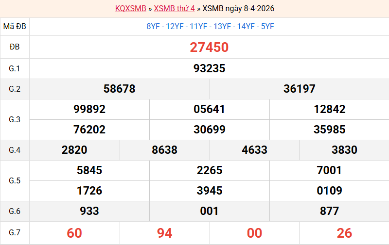 Bảng kết quả hôm qua ngày 08/04/2026