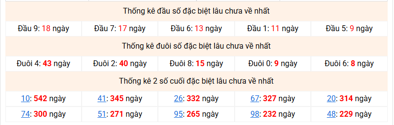 ⚡ Đầu - đuôi đặc biệt lâu chưa ra nhất: Đầu 9 (18 ngày) - Đuôi 4 (43 ngày)