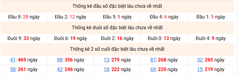⚡ Đầu - đuôi đặc biệt lâu chưa ra nhất: Đầu 9 (28 ngày) - Đuôi 9 (33 ngày)
