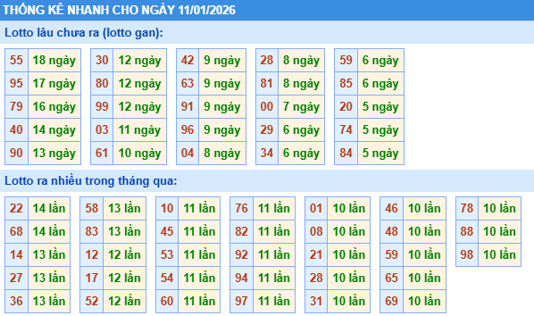 Bảng tần suất lô tô miền bắc ngày 11/01/2026