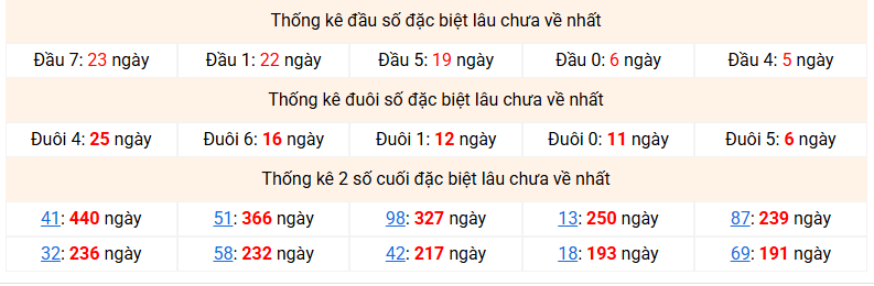 ⚡ Thống kê giải đặc biệt lâu chưa về: 41 - 51 - 98 - 13 - 87
