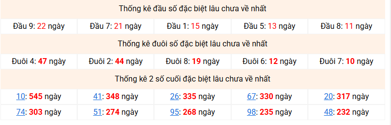 ⚡ Thống kê giải đặc biệt lâu chưa về: 10 - 41 - 26 - 67 - 20