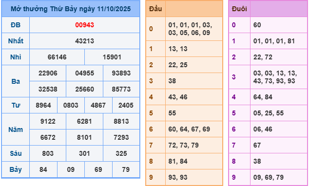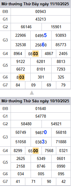 Từ bảng tổng hợp kết quả 11/10/2025, ta phân tích được các dữ liệu quan trọng như sau: