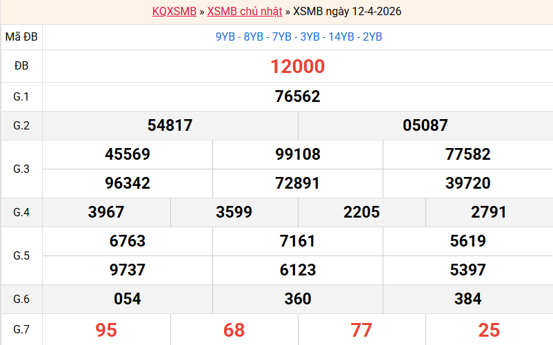 Bảng kết quả hôm qua ngày 12/04/2026