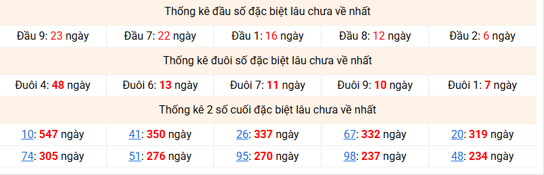 ⚡ Đầu - đuôi đặc biệt lâu chưa ra nhất: Đầu 9 (23 ngày) - Đuôi 4 (48 ngày)