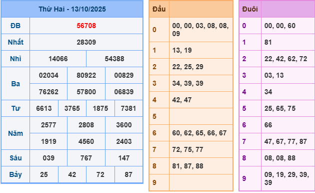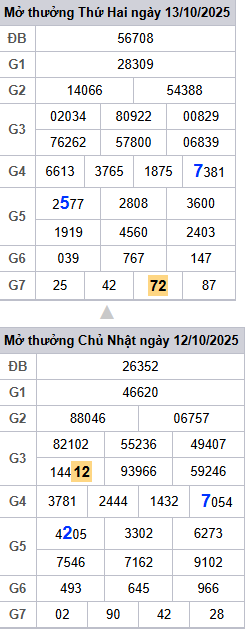 Từ bảng tổng hợp kết quả 13/10/2025, ta phân tích được các dữ liệu quan trọng như sau: