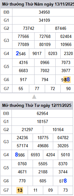 Bảng kết quả hôm qua ngày 13/11/2025
