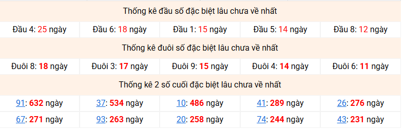 ⚡ Thống kê giải đặc biệt lâu chưa về: 91 - 37 - 10 - 41 - 26