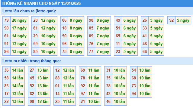 Bảng tần suất lô tô miền bắc ngày 15/01/2026