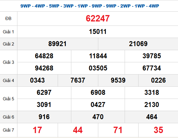 ⚡ Thống kê 2 số cuối giải đặc biệt theo tuần: 47 - 89 - 62 - 23 - 93 - 38 - 94 - 27 - 17 - 22