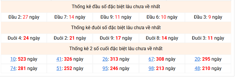 ⚡ Thống kê giải đặc biệt lâu chưa về: 10 - 41 - 26 - 67 - 20