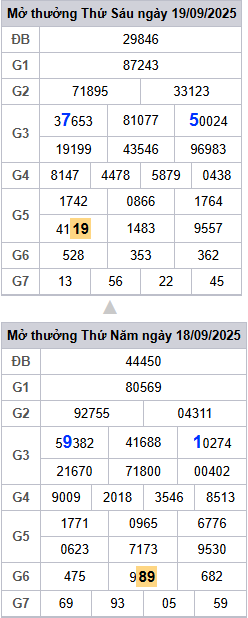 Từ bảng tổng hợp kết quả 19/9/2025, ta phân tích được các dữ liệu quan trọng như sau: