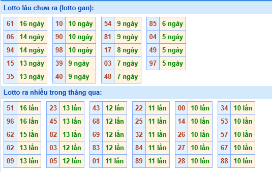 ⚡ Cặp loto ít về nhất: 61 - 06 - 94