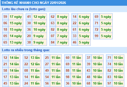 Bảng tần suất lô tô miền bắc ngày 22/01/2026