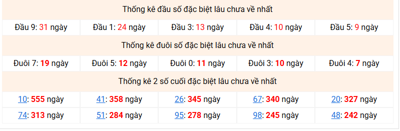 ⚡ Thống kê giải đặc biệt lâu chưa về: 10 - 41 - 26 - 67 - 20