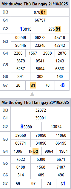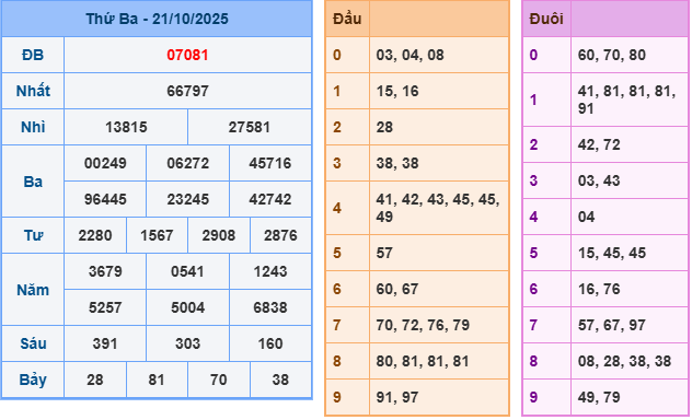 Từ bảng tổng hợp kết quả 21/10/2025, ta phân tích được các dữ liệu quan trọng như sau: