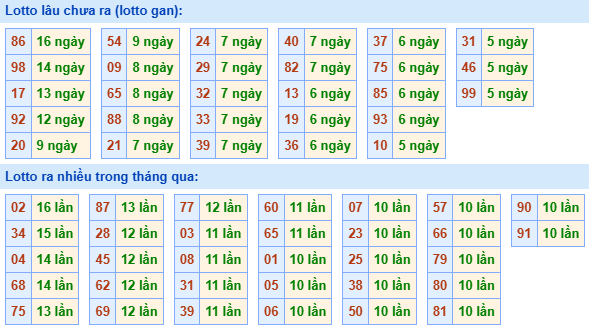 ⚡ Cặp loto ít về nhất: 86 - 98 - 17