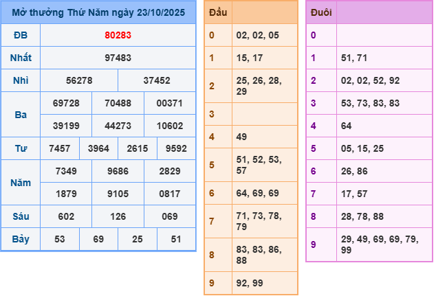 Từ bảng tổng hợp kết quả 23/10/2025, ta phân tích được các dữ liệu quan trọng như sau: