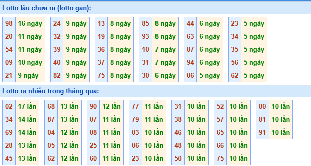 Bảng tần suất lô tô miền bắc ngày 24/10
