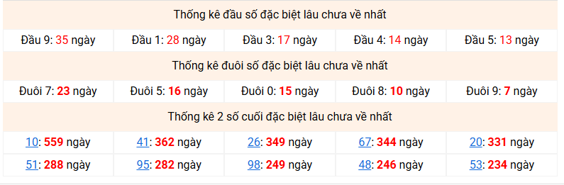 ⚡ Thống kê giải đặc biệt lâu chưa về: 10 - 41 - 26 - 67 - 20