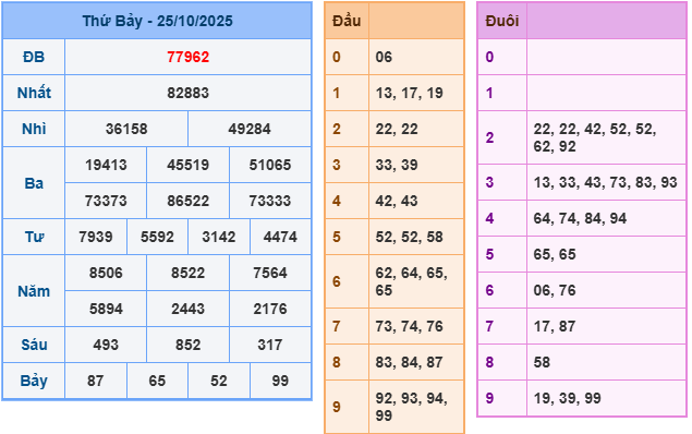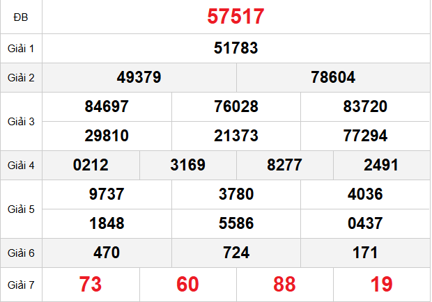 - Kết quả đặc biệt ra 62 ⇒ Gợi ý số hôm nay: 17, 71.