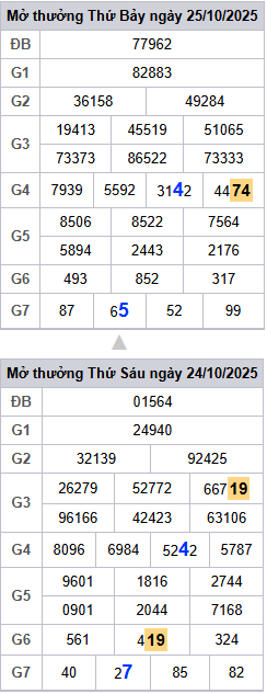 Từ bảng tổng hợp kết quả 25/10/2025, ta phân tích được các dữ liệu quan trọng như sau: