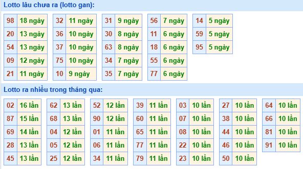 ⚡ Cặp loto ít về nhất: 98 - 20 - 54