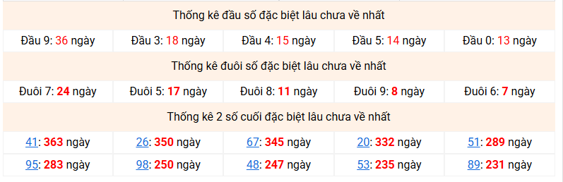 ⚡ Thống kê giải đặc biệt lâu chưa về: 41 - 26 - 67 - 20 - 51