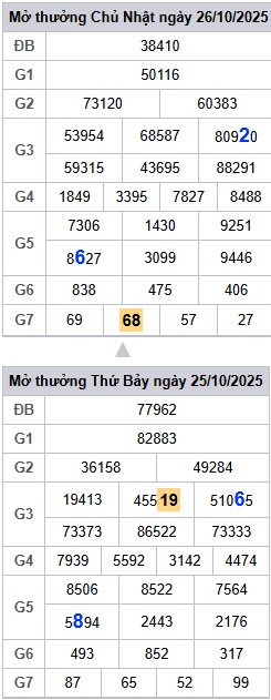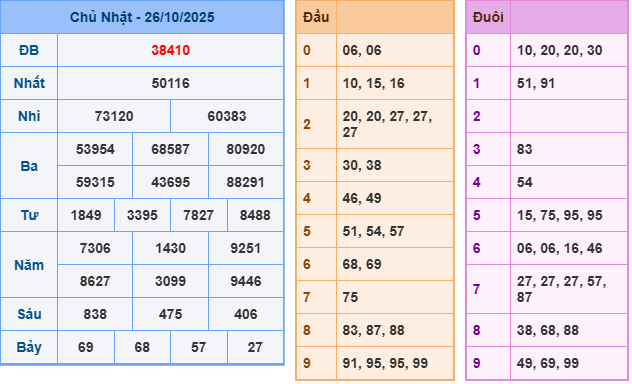 Bảng thống kê 2 số cuối đặc biệt gan ngày 27/10