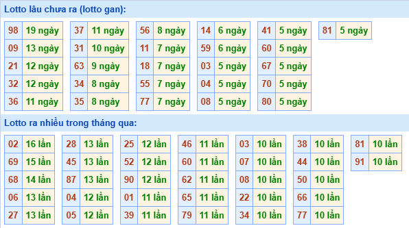 ⚡ Cặp loto ít về nhất: 98 - 09 - 21
