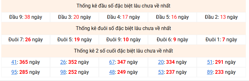 ⚡ Thống kê giải đặc biệt lâu chưa về: 41 - 26 - 67 - 20 - 51