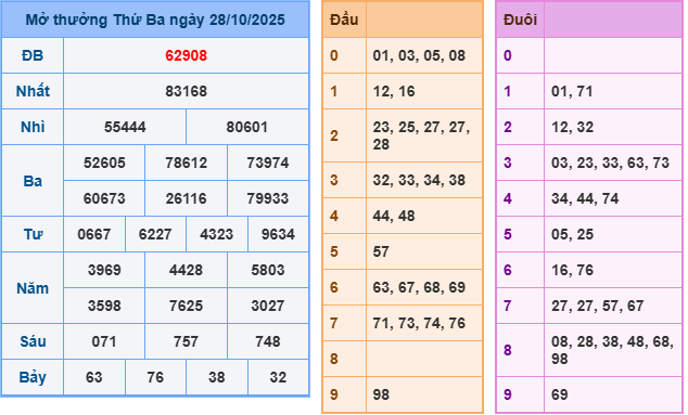 Hôm qua đặc biệt 62908 → số hôm nay: 08, 80.