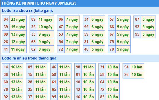 Bảng tần suất lô tô miền bắc ngày 30/12