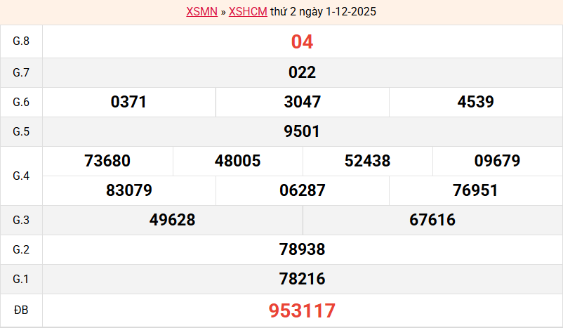 Mời các bạn xem lại bảng kết quả kỳ trước với giải đặc biệt, giải tám, lô tô 2 số để có thể đưa ra nhận định dự đoán HCM ngày 06/12 năm 2025 chuẩn xác nhất