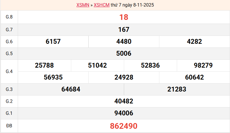 Bảng kết quả TP HCM ngày 08/11/2025 tuần trước