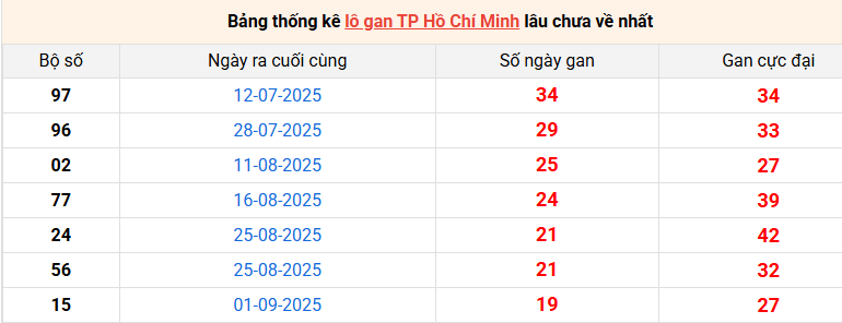 Bảng thống kê lô gan XSTP lâu về nhất 10/11/2025