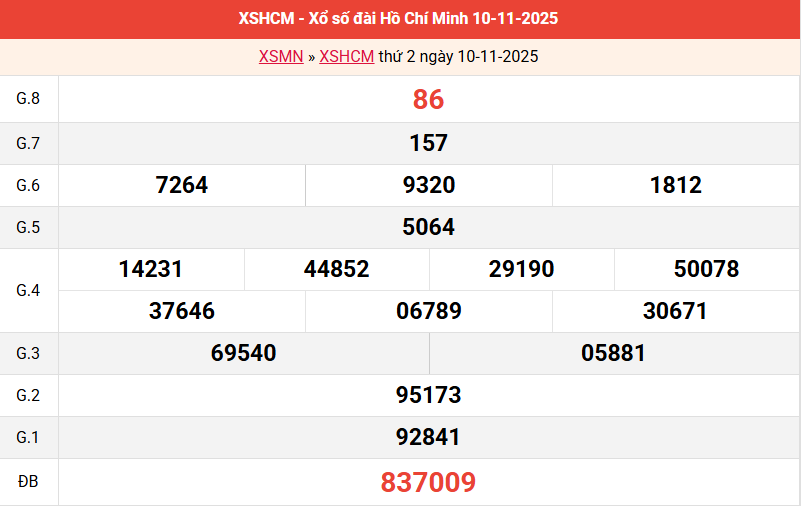 Bảng kết quả TPHCM ngày 10/11/2025 tuần trước