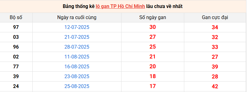 Bảng thống kê lô gan XSTP lâu về nhất 27/10/2025