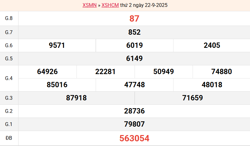 Mời các bạn xem lại bảng kết quả kỳ trước với giải đặc biệt, giải tám, lô tô 2 số để có thể đưa ra nhận định dự đoán HCM ngày 27/9 năm 2025 chuẩn xác nhất