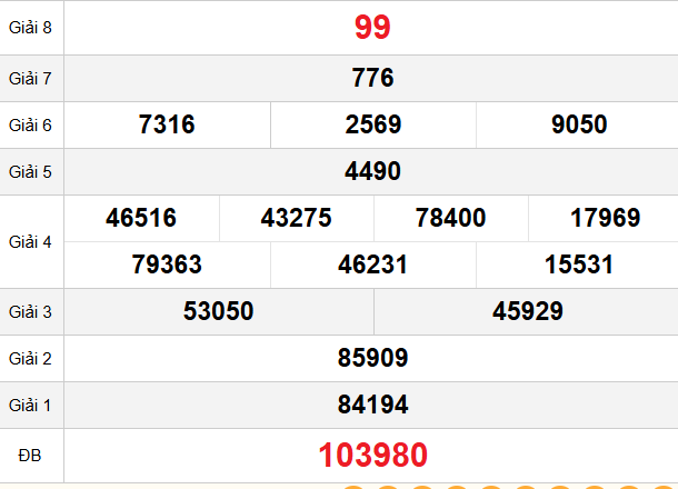 ⚡ 2 số cuối giải đặc biệt gần đây: |