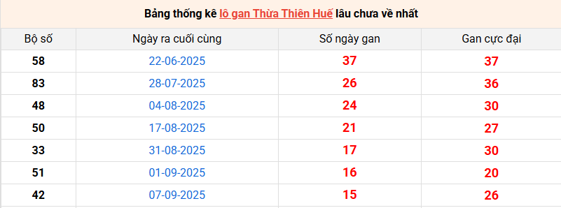 Bảng thống kê lô gan Huế lâu về nhất 02/11/2025