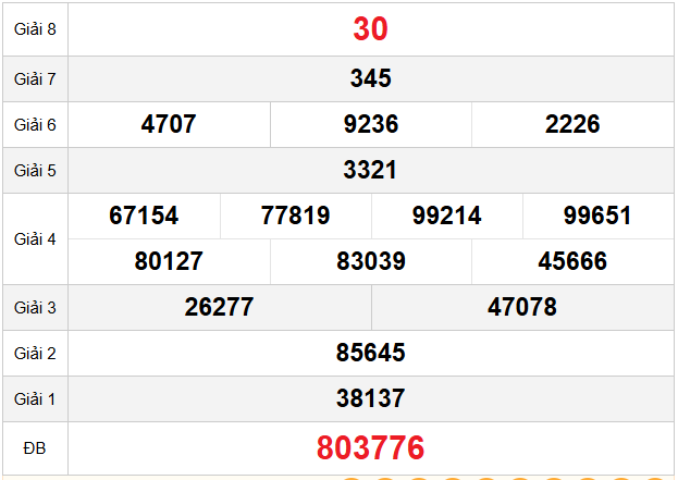 Mời các bạn xem lại bảng kết quả kỳ trước với giải đặc biệt, giải tám, lô tô 2 số để có thể đưa ra nhận định dự đoán TTH ngày 05/01/2026 chuẩn xác nhất.