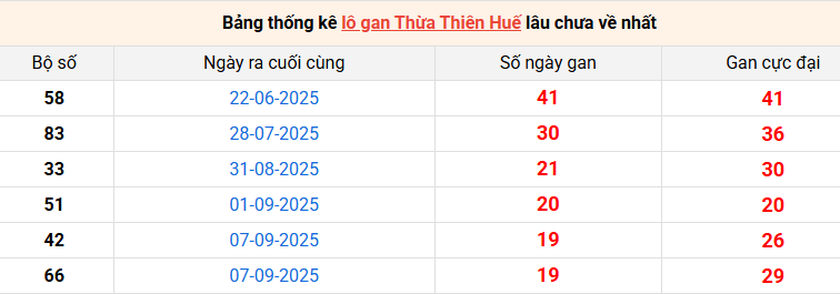 Bảng thống kê lô gan Huế lâu về nhất 16/11/2025
