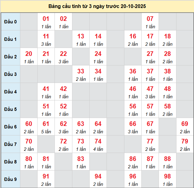 Soi cầu Huế ngày 20/10/2025 theo bảng bạch thủ 3 ngày