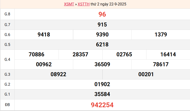 Bảng kết quả Huế ngày 22/9/2025 tuần trước
