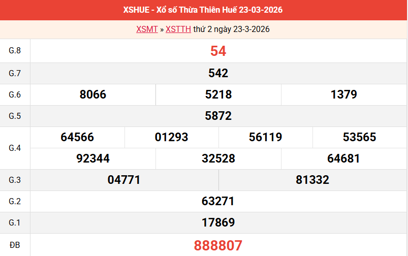 Bảng kết quả Huế ngày 23/03/2026 tuần trước
